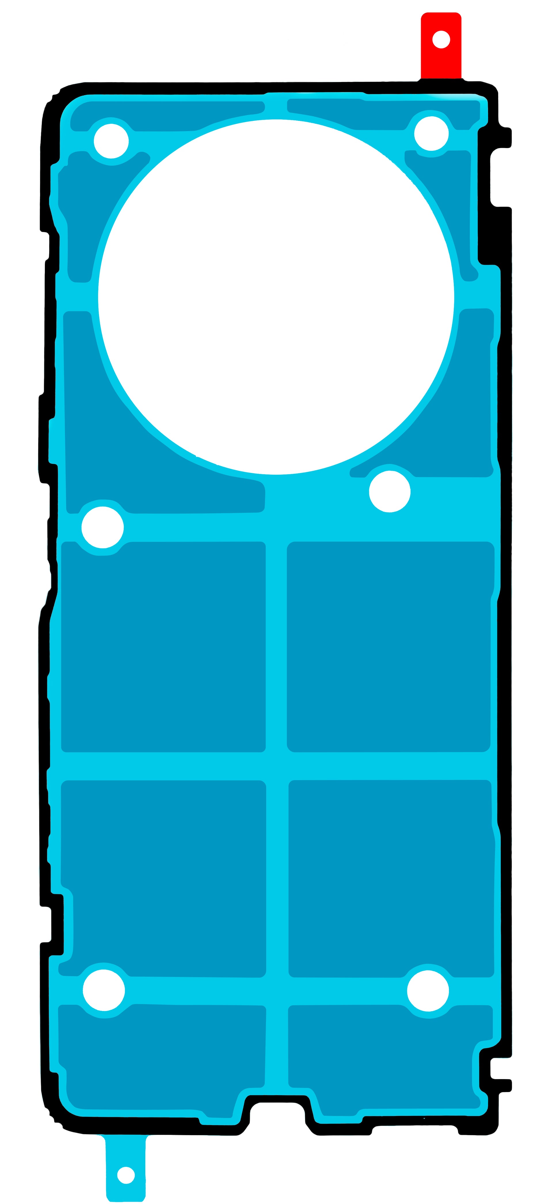 Adhesive designed for securing the phone frame cover.