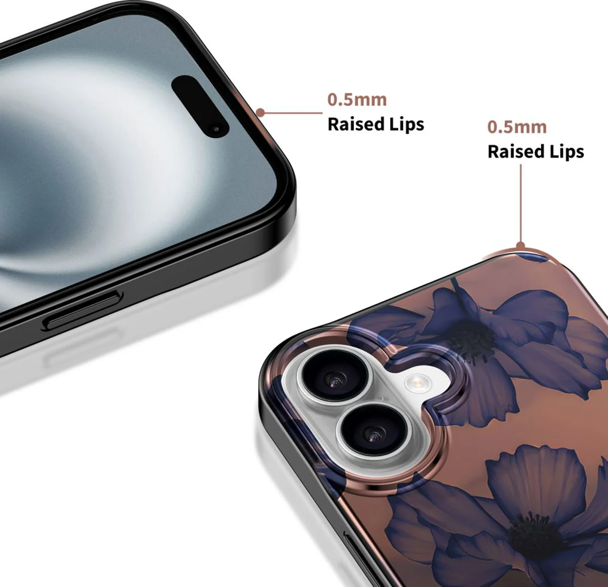 The raised frame around the camera area provides extra safety for the lenses, preventing damage when in contact with various surfaces.