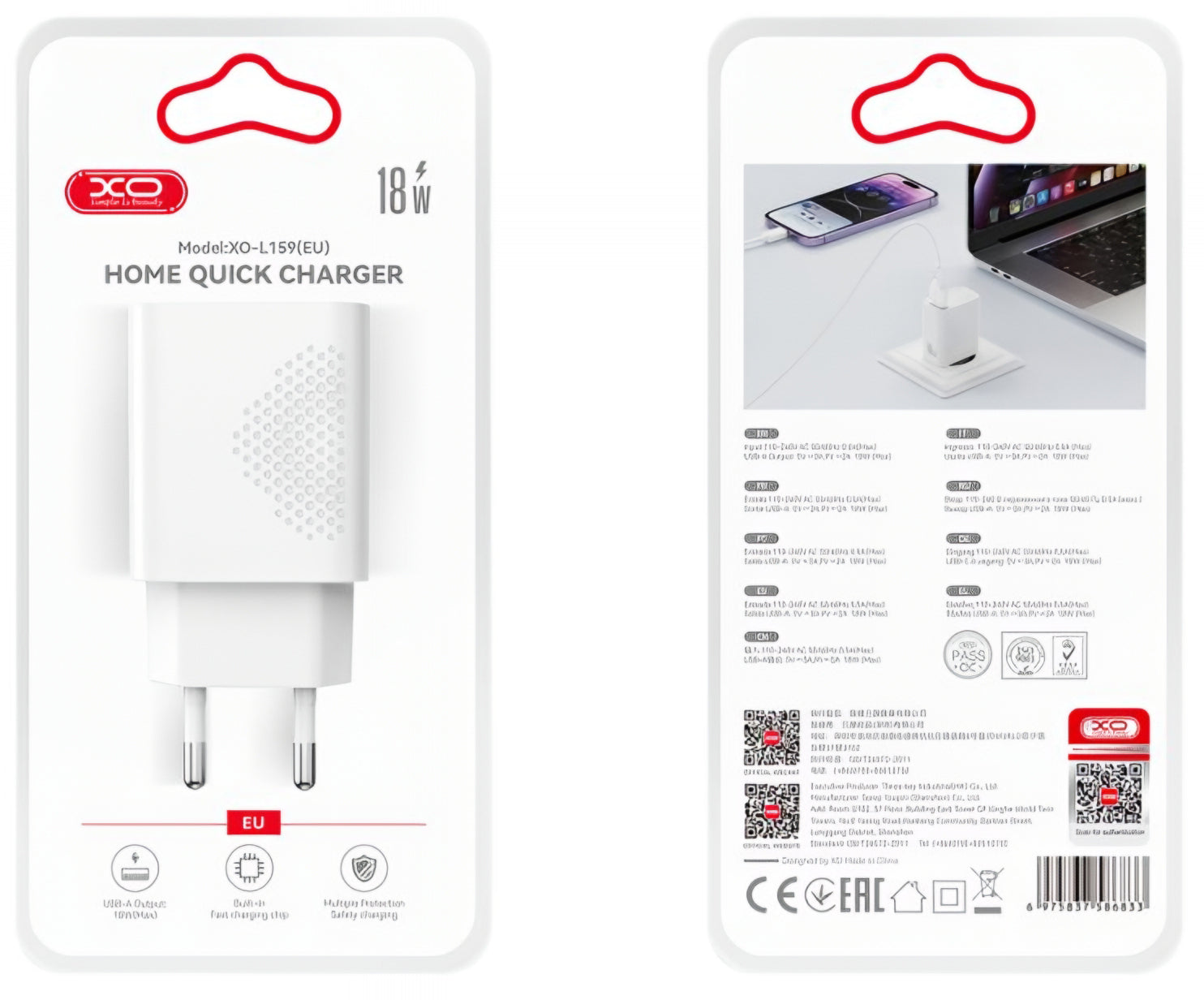 XO L159 is a simple and efficient charger, designed to provide fast charging through the USB-A port, with a maximum power of 18 W.