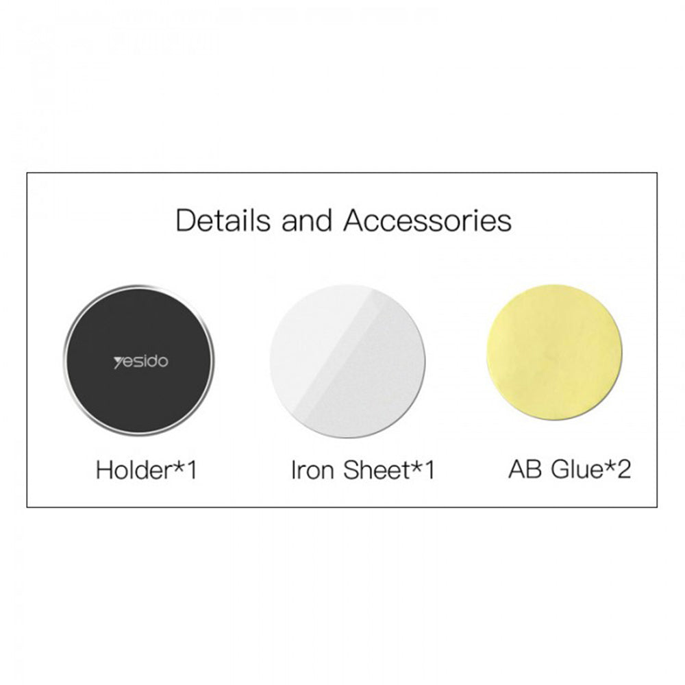 Pakkaus sisältää: telineen, metallilevyn ja liiman.