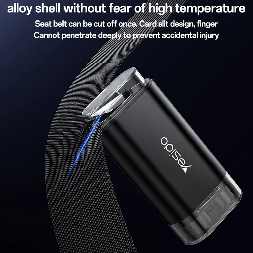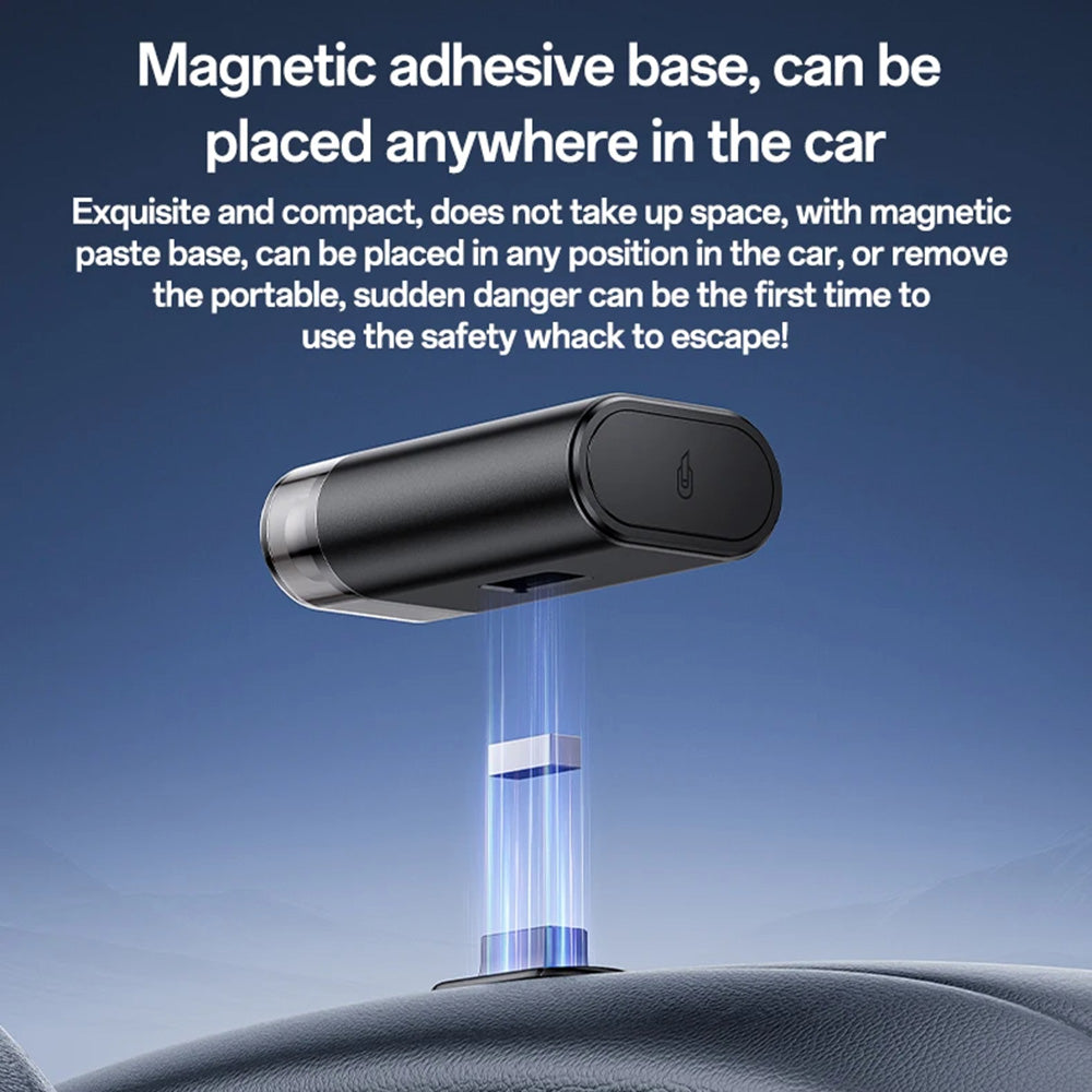 ruostumattomasta teräksestä valmistettu terä leikkaa turvavyöt, ja integroitu magneetti mahdollistaa näkyvän ja helpon kiinnityksen autossa.