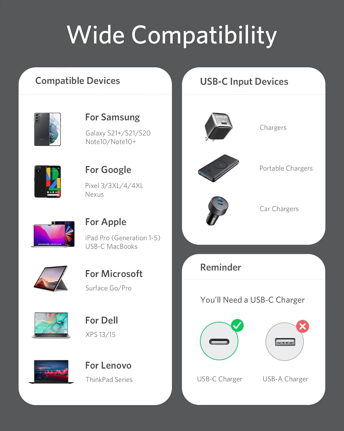 - Yhteensopivuus: USB-C puhelimet, tabletit ja kannettavat tietokoneet